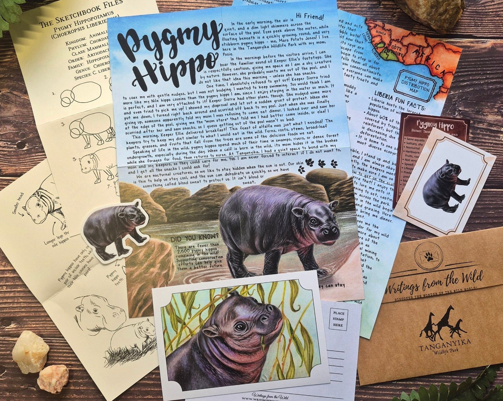 For this mail club, we knew we wanted to take it a step further. Each month, you will receive a new letter from one of Tanganyika's ambassador animals! (Yes, this means the famous Mars, the pygmy hippo who has stolen hearts around the world!) These letters will showcase the animal's daily life in the Park, how their wild counterparts live, and discuss conservation. You will also see their personalities shine through in the letter! Our hope is to bring awareness, foster a love for these animals, and inspire stewardship for them.